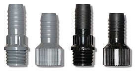 Senninger´s hose and PE tube barb adapters are constructed of non–corrosive UV–resistant thermoplastic for longer life. Each is backed by 2–year warranty.–Models for PE tubing (grey), ¾" barb inlet, available in M NPT and F NPT outlets